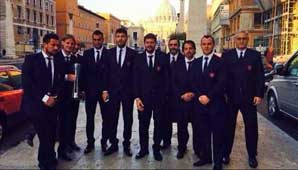 El Santo Padre no recibió a la delegación de San Lorenzo en una audiencia privada, pero sí lo hizo en la Plaza San Pedro, después de la audiencia general en la que saludó a muchos de los presentes.