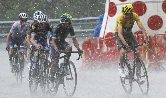 La etapa reina de los Pirineos disputada entre Vielha y Arcalís empezó a pleno sol, a 30 grados, y terminó en la cima andorrana con una impresionante tormenta de granizo, donde Chris Froome y Nairo Quintana entraron de la mano, con el mismo tiempo y sin cambios en la general.
