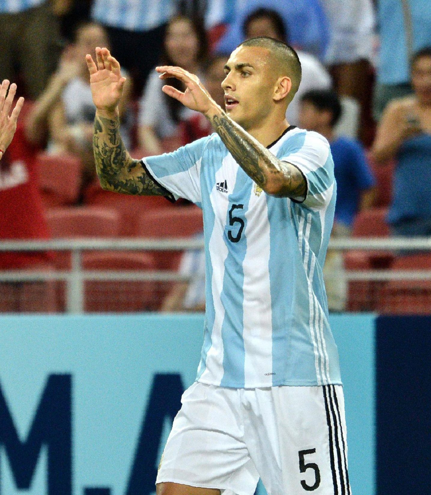 Federico Fazio, Joaquín Correa, Alejandro “Papu” Gómez, Leandro Paredes (foto) y Lucas Alario debutaron en la red rival vistiendo la camiseta de la Selección Argentina.