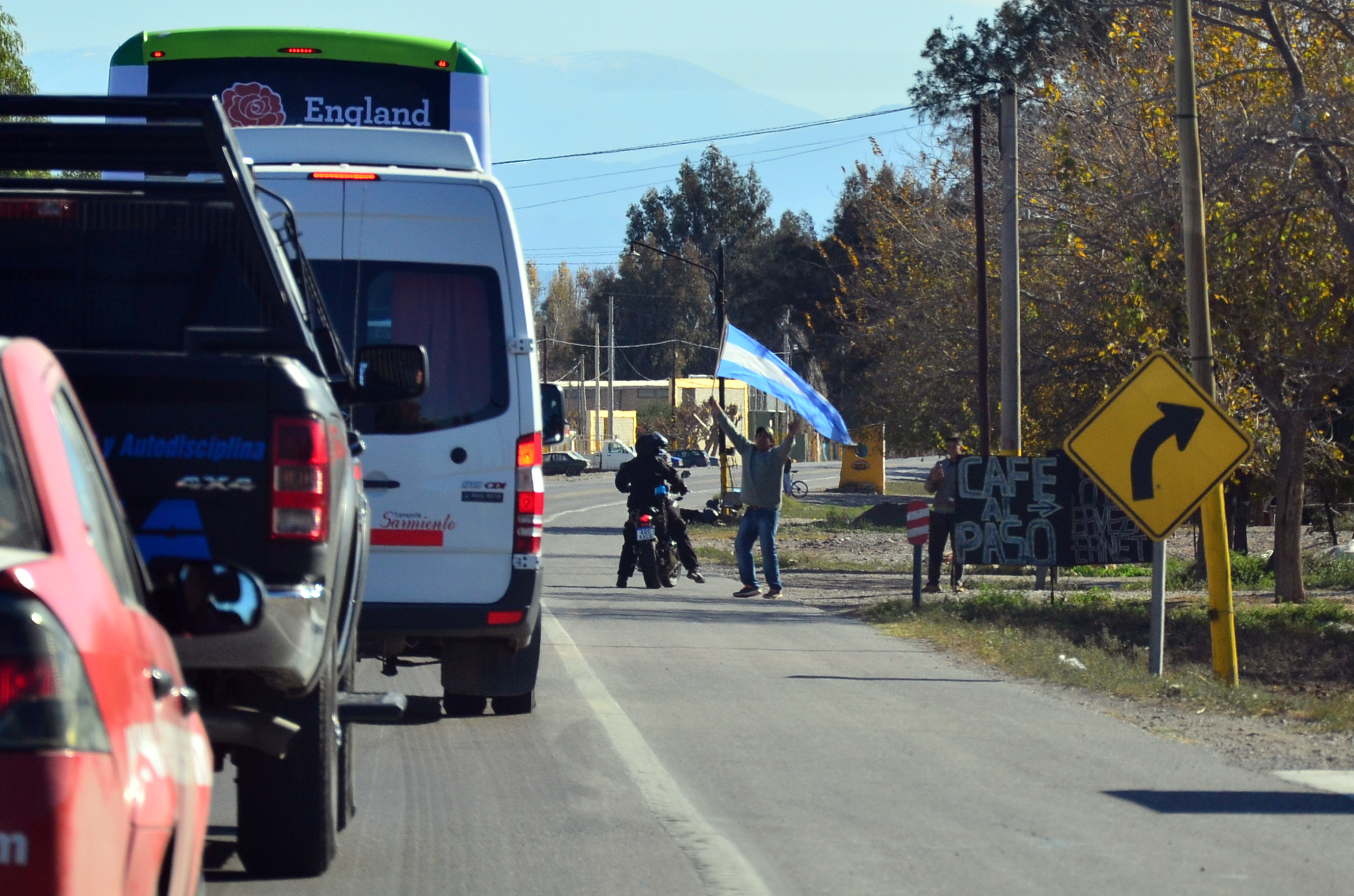 Durante el recorrido de la selección inglesa, un sanjuanino mostró su patriotismo mostrando una bandera argentina