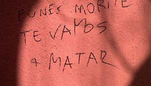 El delantero de River sufrió una grave amenaza. "Funes morite te vamos a matar", dice la leyenda que ilustra las paredes de su casa. No es la primera que recibe el cuestionado delantero. "Gabriel está muy asustado y con mucha bronca. Hasta ha sido increpado en un semáforo y le han gritado cosas en la calle", le dijo un pariente del futbolista al portal MuyRiver.