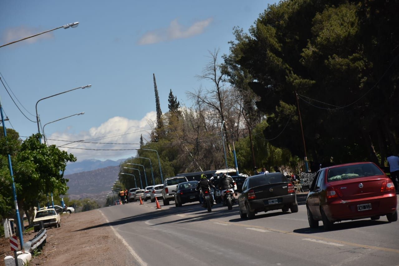 En el camino emplazado entre el puente de Albardón y el autódromo, los autos se movían a paso de hombre, este domingo.