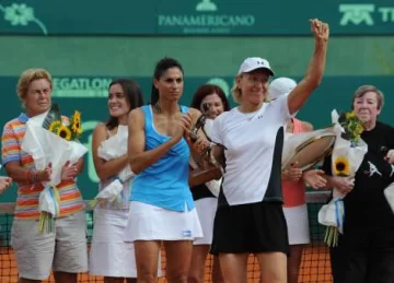 Buenos Aires, 14 de marzo.- Gabriela Sabatini, la mejor tenista argentina de la historia, y la estadounidense Martina Navratilova, ex número uno del mundo, brindaron hoy una exhibición de tenis a beneficio de la Fundación Miastenia Gravis
