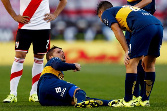 "Dolor en la región aquiliana izquierda" fue la sucinta y poco explicativa versión oficial que arrojó el parte médico elaborado por el cuerpo médico boquense al término del encuentro que los "xeneizes" le ganaron por 1 a 0 a River Plate en el estadio Monumental, cuyo campo de juego debió abandonar antes del minuto de partido por la mencionada lesión.