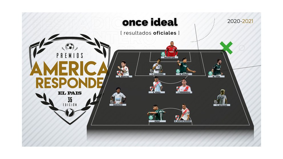 Más allá del galardón que recibió Gallardo, otros cuatro jugadores de River fueron seleccionados para el equipo ideal del continente: Gonzalo Montiel, Enzo Pérez, Nacho Fernández, y el colombiano Rafael Santos Borré estuvieron en un once ideal que tuvo a otros cuatro futbolistas del campeón Palmeiras y un trío del Santos, el otro finalista de la última edición de la Libertadores.