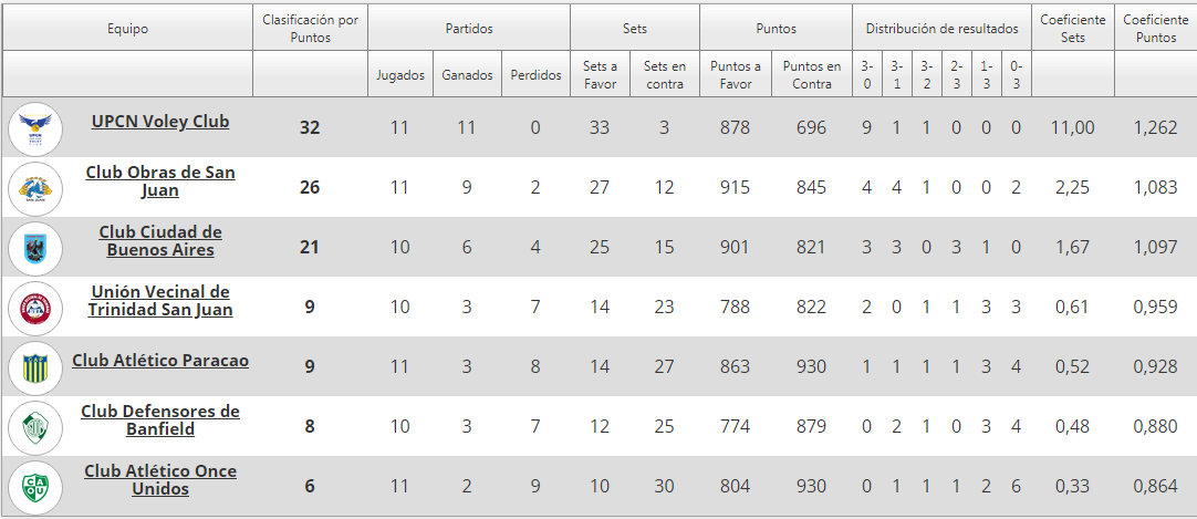 En tanto, UPCN sigue invicto y en la 11ma victoria al hilo (16 si se consideran también los 5 partidos de la Copa Argentina) ganó con parciales 25-13, 25-13, 25-21. UPCN, que ya se aseguró el priemr lugar de esta etapa, por lo qu clasifica directamente a instancia de semifinales, concluirá mañana también su paricipación en la fase reegular, al medirse desde las 15 con Defensores de Banfield.