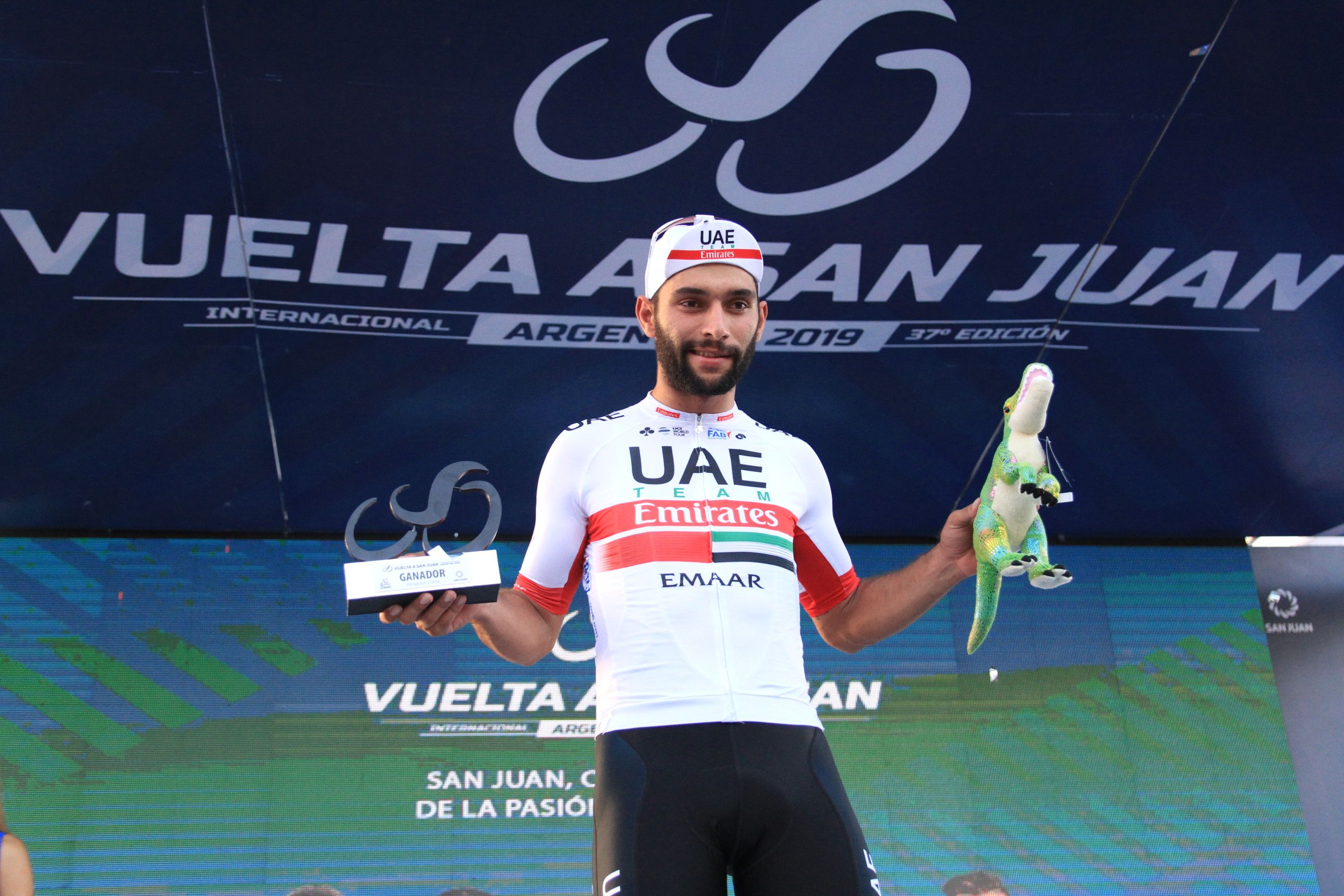 Tras pasar por el podio y cumplir con el control antidoping el colombiano Fernando Gaviria arribó a la conferencia de prensa largo rato después de culminada la carrera. Dijo estar muy contento de haber ganado: "Ganar siempre me hace feliz y más en esta nueva etapa de mi carrera deportiva, debutando con el UAE", comentó a los representantes de la prensa de todas latitudes.