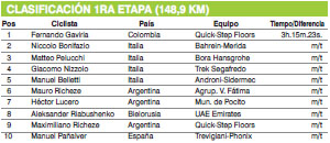La etapa de apertura de la 36ta edición de la Vuelta a San Juan se definió con un extraordinario concierto de uno de los mejores trenes, sino el mejor, del pelotón mundial, el del equipo belga Quick-Steep Floors. La victoria fue de su primer violín, el colombiano, de 23 años, Fernando Gaviria; quien remató con gran autoridad la excelsa tarea de sus compañeros de orquesta, el belga Iljo Keisse y el argentino Maximiliano Richeze, quienes lo dejaron en la distancia ideal para que activara los dos turbos que tiene por piernas y deje con la boca gusto a fósforo al cuarteto italiano compuesto por Niccolo Bonifazio (Bahrain-Merida), Matteo Pelucchi (Bora Hansgroe), Giacomo Nizzolo (Trek Segafredo) y Manuel Belletti (Androni-Sidermec), que se ubicaron del segundo al quinto puesto.