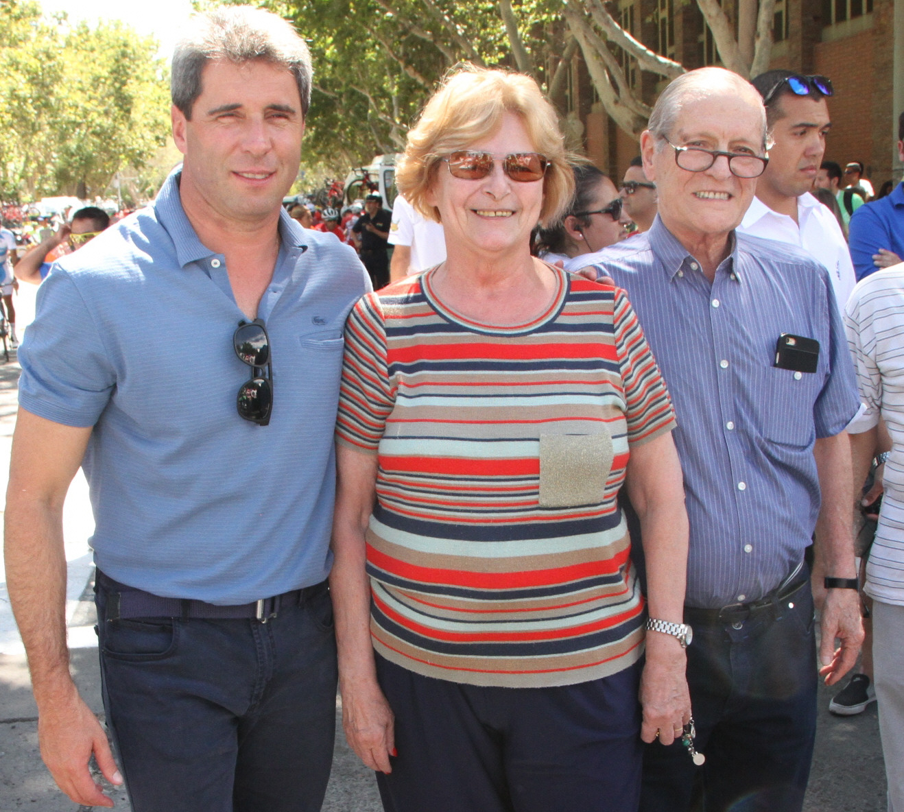 El Director General de DIARIO DE CUYO, Francisco Baltazar Montes, junto a su esposa María Inés Peñafort de Montes, se dieron cita en la largada de la primera etapa y compartieron un grato momento con el gobernador Sergio Uñac. El día de la presentación, Montes tuvo un reconocimiento por el constante apoyo al ciclismo, incluso DIARIO DE CUYO es uno de los auspiciantes en esta edición de la Vuelta.