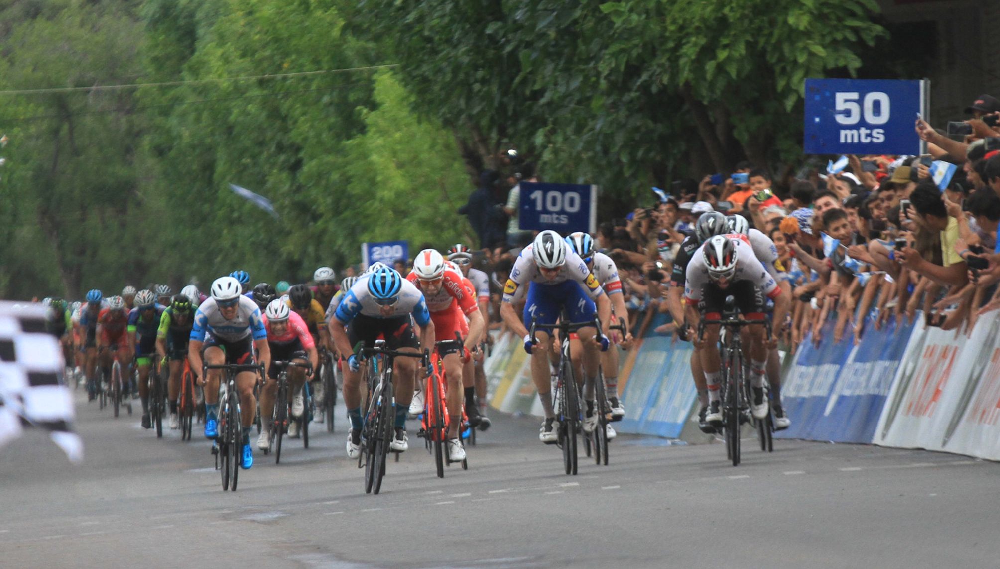 La neutralización de los dos escapados se produjo faltando 8 kilómetros, cuando una nube caprichosa dejó caer como una bendición su carga de agua. Al embalaje se llegó sin lluvia y en el mismo los del UAE no tuvieron rivales que pudieran sacarlos de su coordinado y contundente avance que depositó a Gaviria de frente a metros de la meta para que haga lo que mejor sabe.