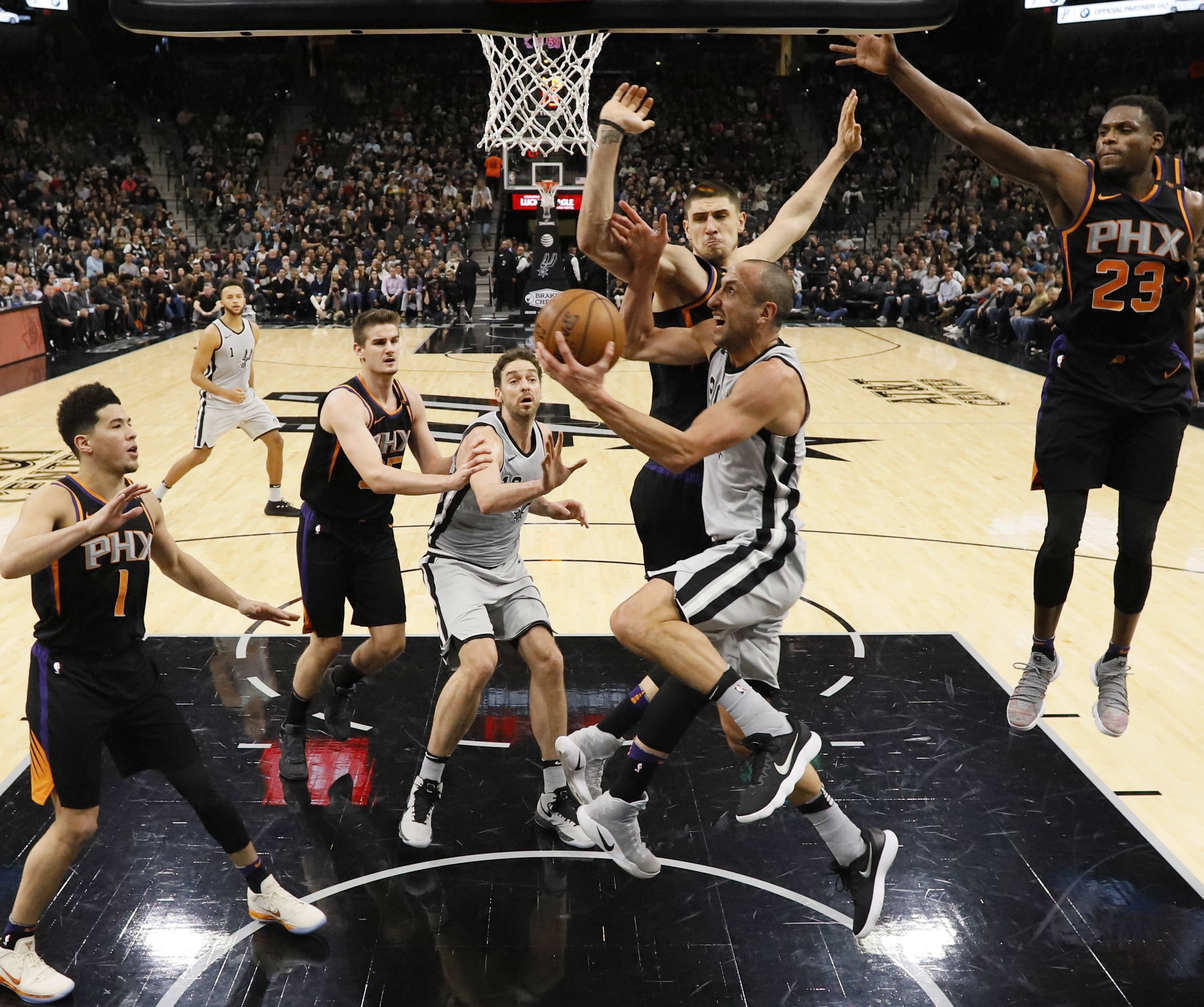 El astro argentino Emanuel Ginóbili volvió a despertar admiración en el mundo del básquetbol antenoche al marcar 21 puntos en el triunfo de San Antonio Spurs sobre Phoenix Suns por 103-89, lo que elevó su récord de goleo en la actual temporada de la NBA.