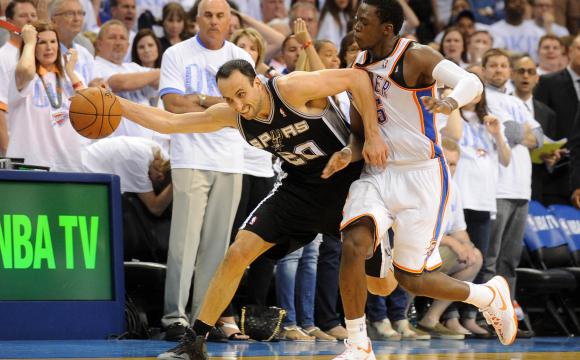 Emanuel Ginóbili adujo no conformarse con la clasificación de los San Antonio Spurs a la final de la NBA del básquetbol estadounidense y remarcó que el equipo texano pretenderá ganar “cuatro partidos más” para arrebatarle el anillo a Miami Heat. “Ahora queremos ganar cuatro partidos más. Volver a la final es un logro enorme”, consideró el escolta bahiense, tras el valioso triunfo 112-107 de los Spurs sobre Oklahoma City Thunder, resultado que permitió cerrar la serie 4-2 a favor de los dirigidos por Gregg Popovich. Por segunda temporada consecutiva, San Antonio se transformó en campeón de la Conferencia Oeste y ahora irá por el título, a partir del jueves 5, ante Miami, el mismo rival que le ganó el año pasado por un ajustado 4-3 en la llave decisiva. “Estoy muy orgulloso de ser parte de este equipo. Afrontamos una situación difícil de gran manera”, consideró el zurdo número 20, todo un emblema ya en la entidad de las ‘Espuelas’, en declaraciones al sitio oficial de la NBA. Ginóbili redondeó anoche otra actuación para el elogio. Cerca de los 37 años, el astro del seleccionado argentino encestó un triple clave a 27 segundos del final, además de un simple, para que los Spurs se situaran en ventaja 101-99, cuando los Thunder arremetían. Finalmente, dos libres de Russell Westbrook llevaron el partido a la prórroga. Ginóbili quiere todo.