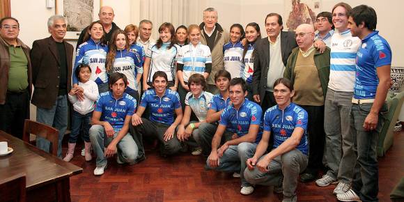 Las hermanas Verónica y Graciela Zárate, junto a Tania Castro y Andrea Arías, todas ganadoras de medallas, junto a Alejandra Seguín, Erica Luna, Vanesa Solera y Carla Alvarez, representaron al pelotón femenino. Jorge Pí, Pedro González, Emanuel Saldaño, Oscar y José Luis Villalobo, Luciano Montivero, Gerardo Tivani y Emiliano Fernández, fueron los representantes del conjunto sanjuanino. Tres cuadros, con imágenes de sus victorias, entregaron Pí y Verónica Zárate. Otra tomada en el Panamericano de México le entregó "Bam Bam’ Fernández, récordman argentino -histórico- del Kilómetro.