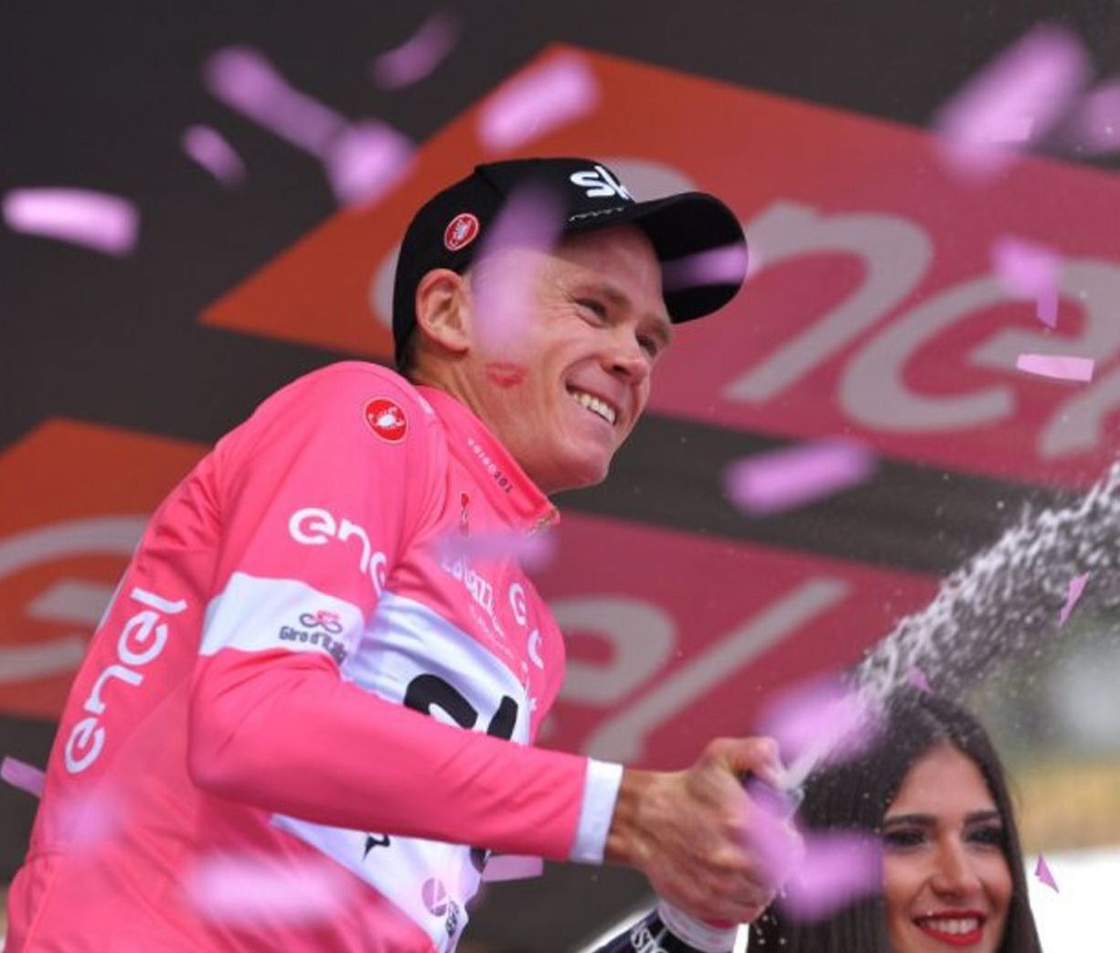 El ciclista británico Christopher Froome (Team Sky) festejó ayer su victoria en el Giro de Italia. Como el último día, que será hoy, hay un pacto no escrito que se respeta al malla líder; en el tramo que se disputará hoy sobre un circuito en Roma (115 kilómetros) se correrá sólo para quedarse con el premio de la etapa.