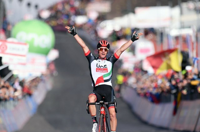 Después de 179 kilómetros de fuga Jan Polanc celebró el triunfo para alegría del UAE Team Emirates. Ni Eugenio Alafaci (Trek-Segafredo), Pavel Brutt (Gazprom) ni Jacques Janse van Rensburg (Dimension Data) pudieron seguirlo hasta el Etna, pese a salir juntos en la escapada del día nada más darse la salida a esta cuarta etapa. Hoy, el quinto parcial partirá de Pedara y llegará a Messina tras 159 km.