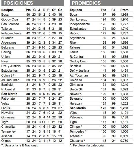 En tanto, en el último partido de la jornada sabatina, San Lorenzo derrotó al ya descendido Chacarita por 1-0. El único gol del partido lo anotó Nicolás Reniero a los 26″ del primer tiempo. Con este resultado el Ciclón trepó hasta la tercera colocación, a 4 puntos del líder Boca.