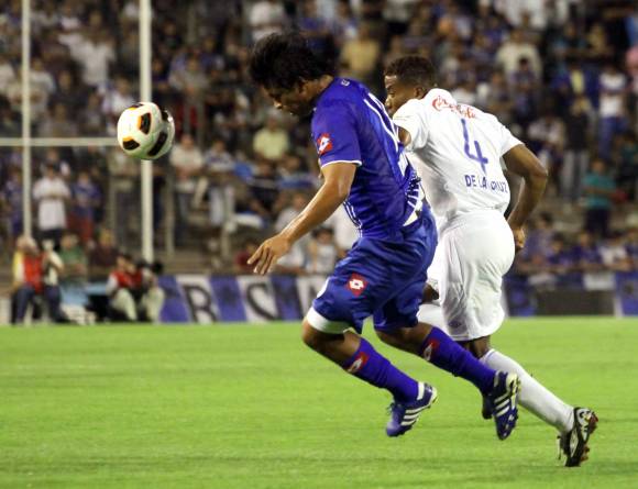 Godoy Cruz se fue en ventaja al descanso porque fue superior a su encumbrado adversario. De a poco el equipo del uruguayo Jorge Da Silva acorraló a los ecuatorianos y logró la apertura del tanteador. A los 16 minutos, Rubén Ramírez desbordó por la izquierda y envió el centro rasante. El rechazo a medias le quedó a Carlos Sánchez, quien dispuso de tiempo para acomodarse y acertar de derecha.
