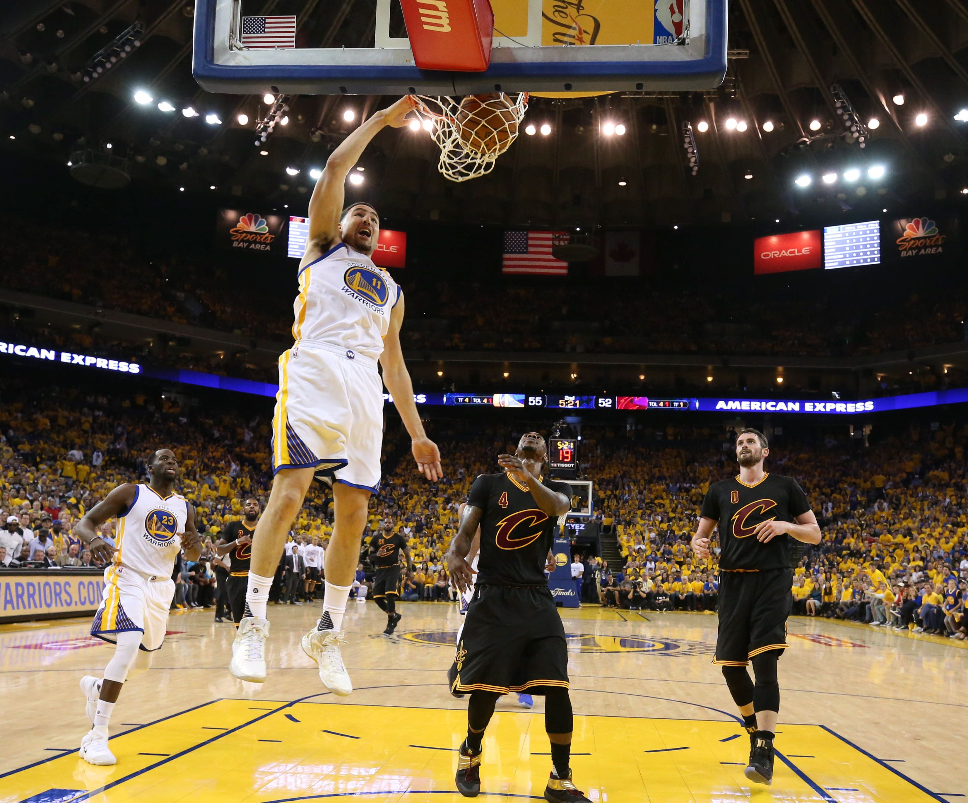 Curry extendió su repertorio a 32 puntos, 10 rebotes y 11 asistencias, mientras que James tuvo un registro de 29, 11 y 14, respectivamente, escoltado por su compañero Kevin Love, segundo goleador de los Cavaliers con 27 tantos.