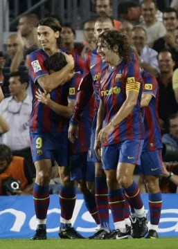 El actual campeón del fútbol español, con la ausencia de Lionel Messi, goleó ayer a Sporting de Gijón por 3-0, en su debut en la liga española. Messi había acordado con el técnico Joseph Guardiola no jugar la primera fecha para reservarse de cara al clásico con Brasil por Eliminatorias Sudamericanas.