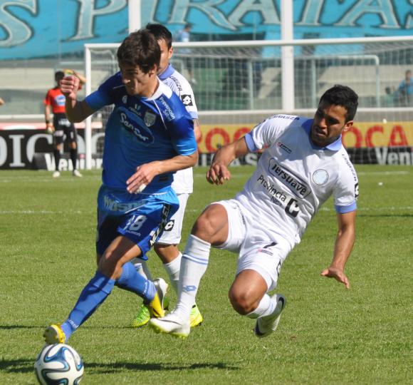 El equipo local fue amo y señor de la primera mitad en la que, con la conducción de Lucas Zelarayán y la potencia de Pereyra hizo los méritos suficientes para irse al descanso en ventaja ante un rival apático, que perdió casi siempre en el medio. El conjunto celeste fue empujando a su rival a su área y generó una buena cantidad de situaciones de gol, como un cabezazo de Pereyra que Conde rechazó con lo justo al corner o un disparo de Cristian Lema que hizo lucir nuevamente al arquero visitante.