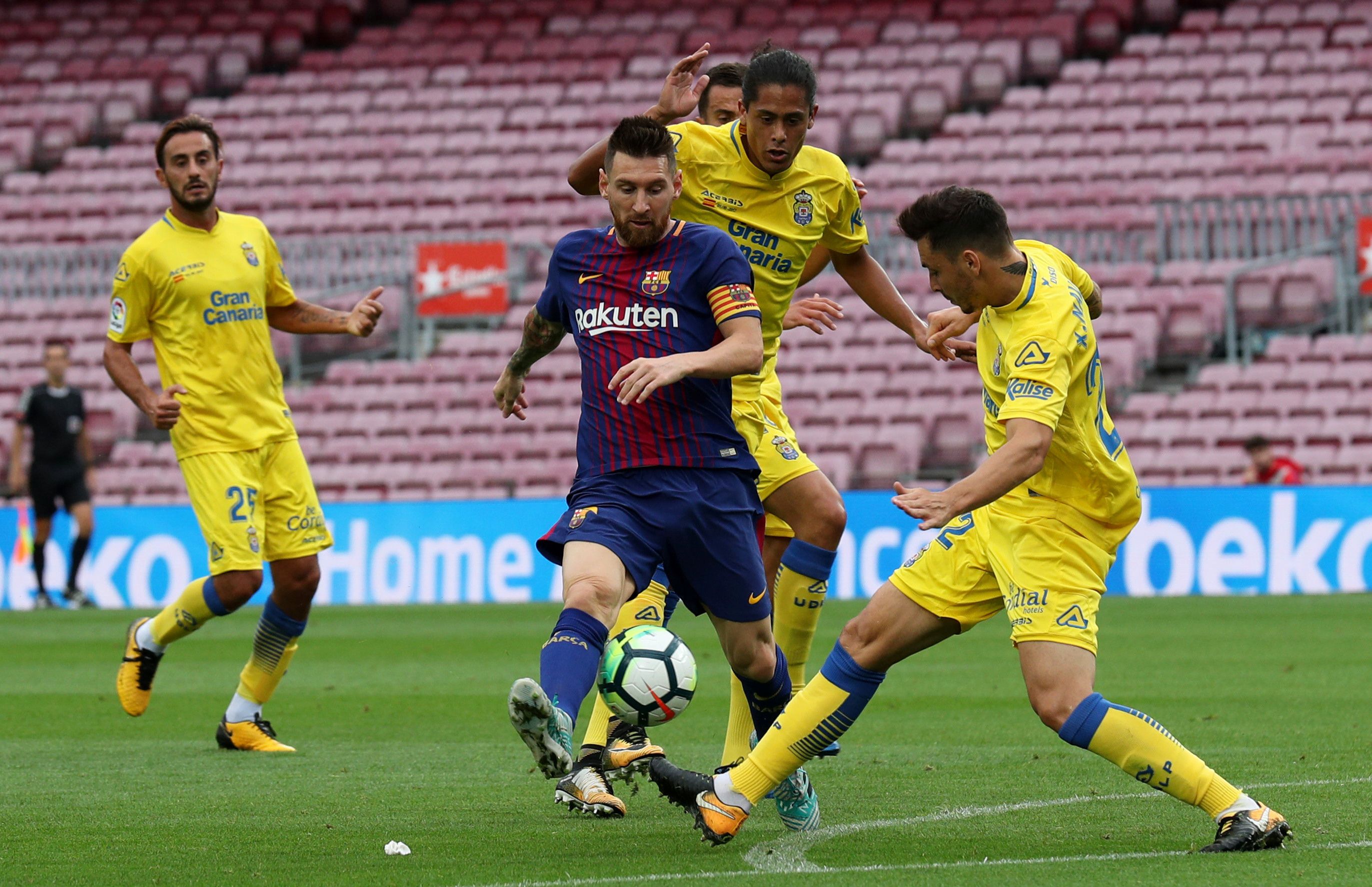 El Barcelona goleó por 3-0 ante Las Palmas, en un politizado partido por la séptima fecha de la Liga de España que desató una crisis institucional con la renuncia de su vicepresidente institucional, Carles Vilarrubí, en desacuerdo con jugar con las puertas cerradas del Camp Nou a raíz del clima de tensión y violencia que rodeó al referéndum independentista de Cataluña.