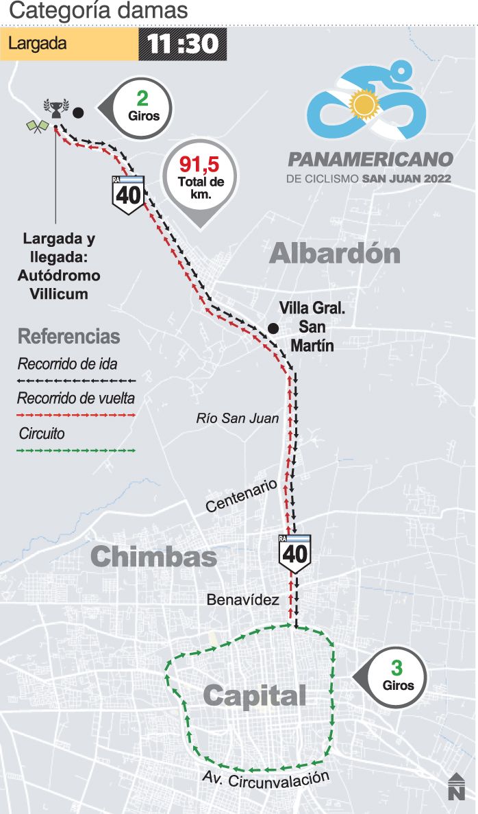 Un total de 58 damas, representando a 14 países, correrán desde las 11.30 la competencia en línea que coronará a una nueva monarca. El seleccionado argentino cuenta con el aporte de tras sanjuaninas, una de nacimiento, Magalí Balmaceda, y dos por decisión propia, Carla Álvarez y Carolina Pérez. Mercedes Fadiga, Antonella Leonardi y Sofía Martelli, completan el sexteto que tendrá la difícil misión de contrarrestar la calidad de equipos rivales integrados con ciclistas que corren en Europa o que tienen nutridos calendarios en sus países, como la cubana Arlenis Sierra y la colombiana Lina Marcela Hernández, quienes parten como las favoritas de una carrera que irá y volverá a la Av. de Circunvalación.