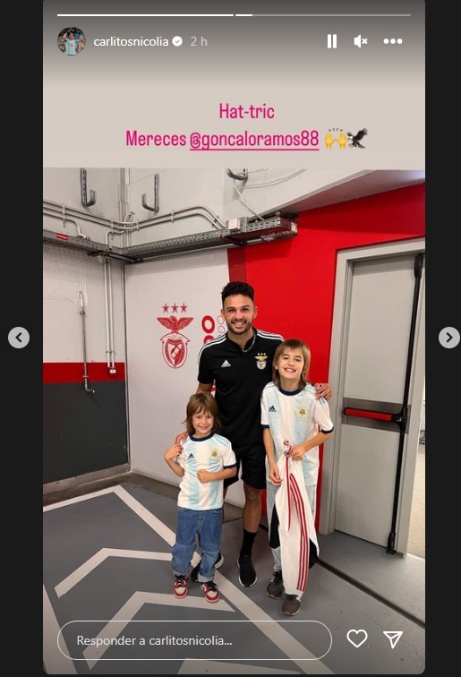 Es "la" figura de la que habla el mundo entero. Se llama Gonçalo Ramos y este martes fue autor de tres goles en la goleada de Portugal ante Suiza en el Mundial de Qatar. A los minutos de la clasificación, Carlos Nicolía, jugador de hockey del Benfica de Portugal, posteó una foto del jugador de 21 años junto a sus hijos Cristiano y Román Nicolía.