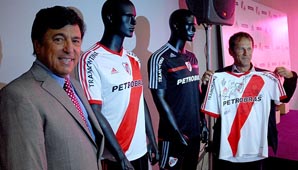 Buenos Aires, 8 de febrero.- Passarella presentó la nueva camiseta, que mantendrá el mismo diseño, pero contará con la presencia de la firma Tramontina en las mangas, en color negro, reemplazando a Poker Stars. Por lucir esta nueva publicidad, River recibirá 600 mil dólares por año, una suma para nada despreciable teniendo en cuenta la pobre economía del club.
