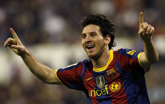Por la 8va fecha de La Liga española, Lionel Messi anotó los dos goles con los que el Barcelona derrotó 2-0 a Zaragoza continúa a un punto del Real Madrid, que aplastó 6-1 a Racing de Santander con un tanto de Higuaín, cuatro de Ronaldo y otro de Ozil.