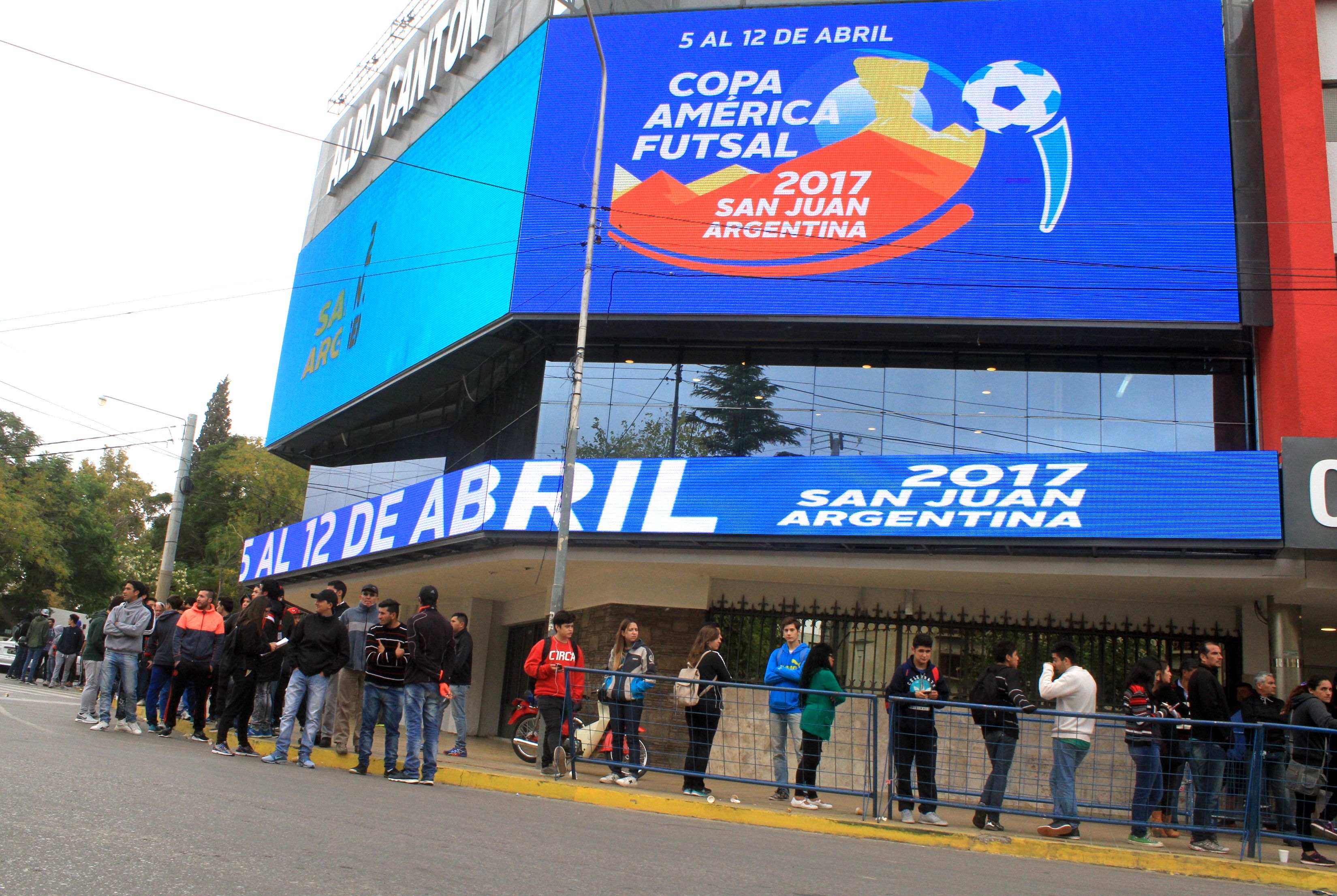 Los sanjuaninos fanáticos del futsal se levantaron muy temprano y comenzaron a hacer fila para poder adquirir una entrada, de las 1.500 que ha puesto a disposición la organización de la Copa América de Futsal, con el objetivo de que nadie se quede con las ganas de presenciar la final entre Argentina y Brasil.