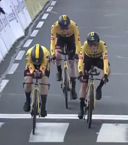 El equipo neerlandés Jumbo-Visma ganó con suspense la contrarreloj por equipos de la París-Niza, este martes en Dampierre-en-Burly (Francia), donde el danés Corta Nielsen (FE Education) se convirtió en el líder por un segundo tras esta etapa de 32,2 kilómetros. El duelo entre el danés Jonas Vingegaard (Jumbo) y el esloveno Tadej Pogacar (UAE), lo tiene arriba ahora al nórdico, que inició la etapa 12s detrás,y por le buen trabajo de su equipo ahora tiene 11s de ventaja sobre su rival directo por la general.