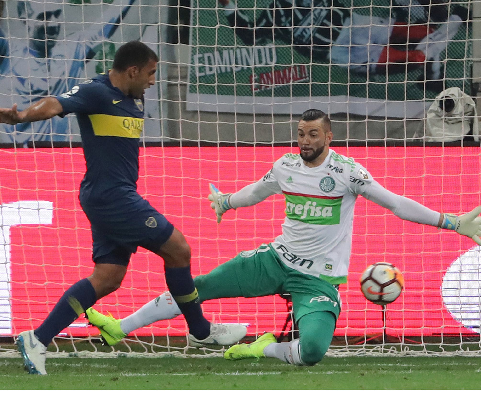 Un gol anulado al Palmeiras, a instancias del VAR, por posición adelantada de Deyverson, quien tiró el centro que conectó Bruno Henrique, marcó el inicio de un partido al que Boca salió a jugarlo con mucha determinación. Bien plantado en la mitad de la cancha, presionando la salida del local y acelerando cuando recuperaba la pelota, obligaba a Palmeiras a abusar del pelotazo.