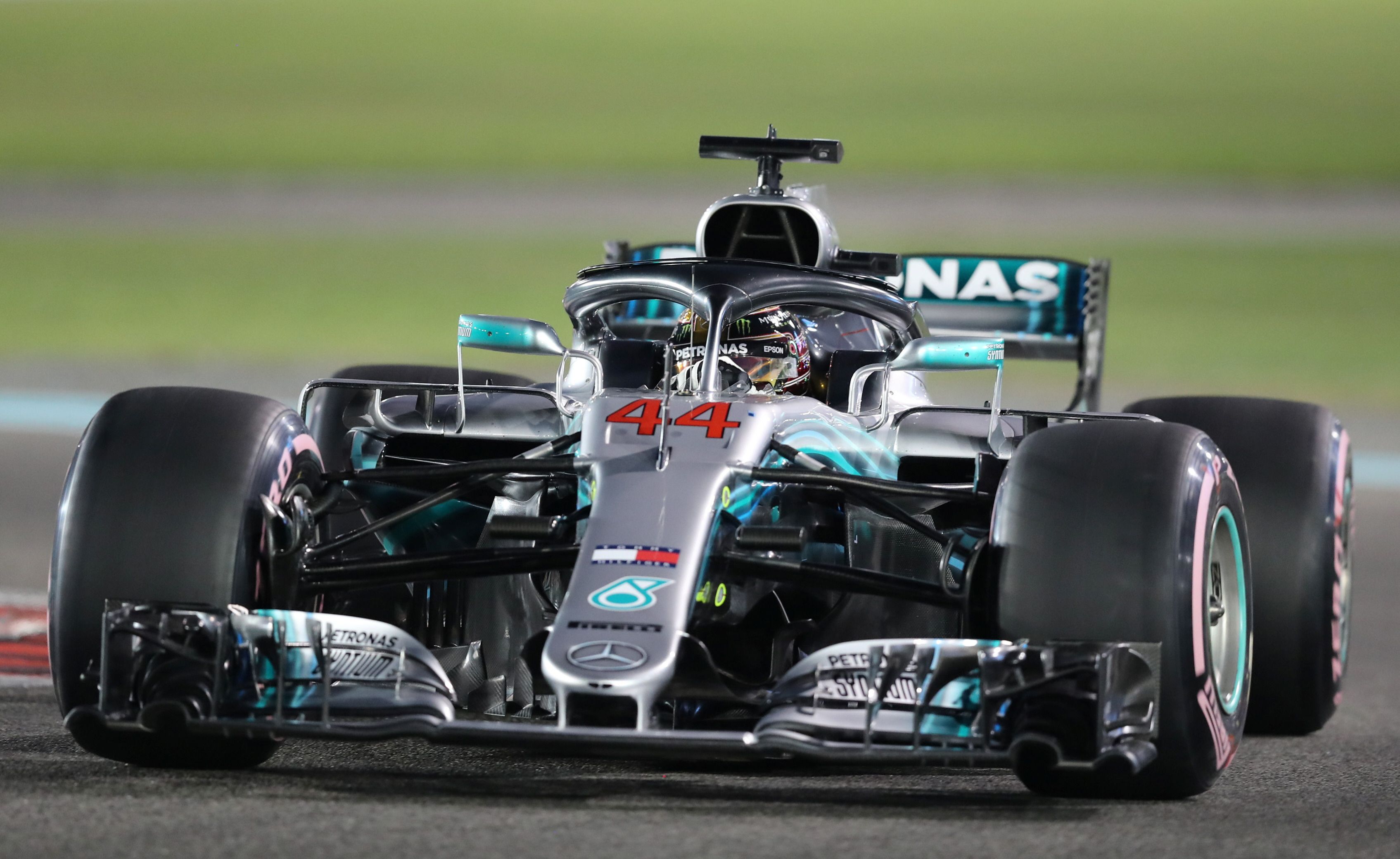 Hamilton batió el récord del circuito de Yas Marina con un tiempo de 1m34s794/1000 milé, superando por 162 milésimas a su compañero Valtteri Bottas, por lo que largarán en la primera fila el último Gran Premio de la temporada, a las 10.10. Detrás quedaron Sebastian Vettel y Kimi Raikkonen, de Ferrari.