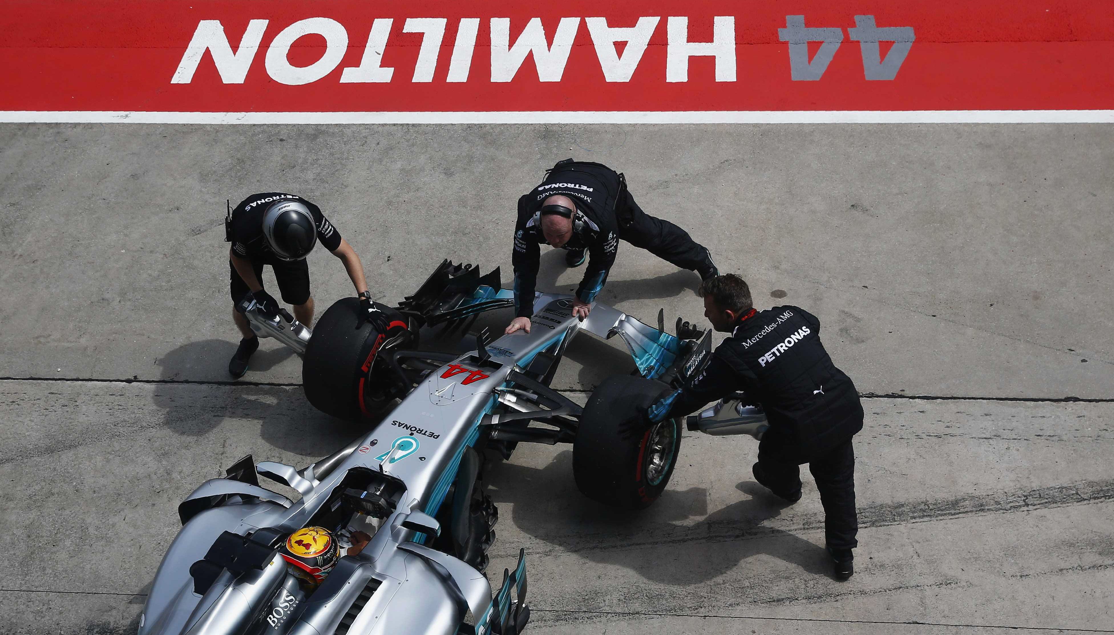 El piloto inglés Lewis Hamilton, a bordo de un Mercedes, largará hoy desde el primer lugar de la grilla de partida en el Gran Premio de Malasia, 15ta prueba puntuable del Campeonato Mundial de la Fórmula 1, luego de haber registrado ayer el mejor tiempo en la tanda de clasificación.