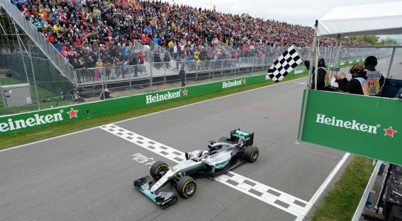 El piloto británico Lewis Hamilton sobrevivió a otro choque en la primera curva con su compañero de Mercedes Nico Rosberg y ganó por quinta vez el Gran Premio de Canadá de Fórmula Uno, recortando a 9 puntos la ventaja que el alemán le lleva en el Campeonato de Pilotos.