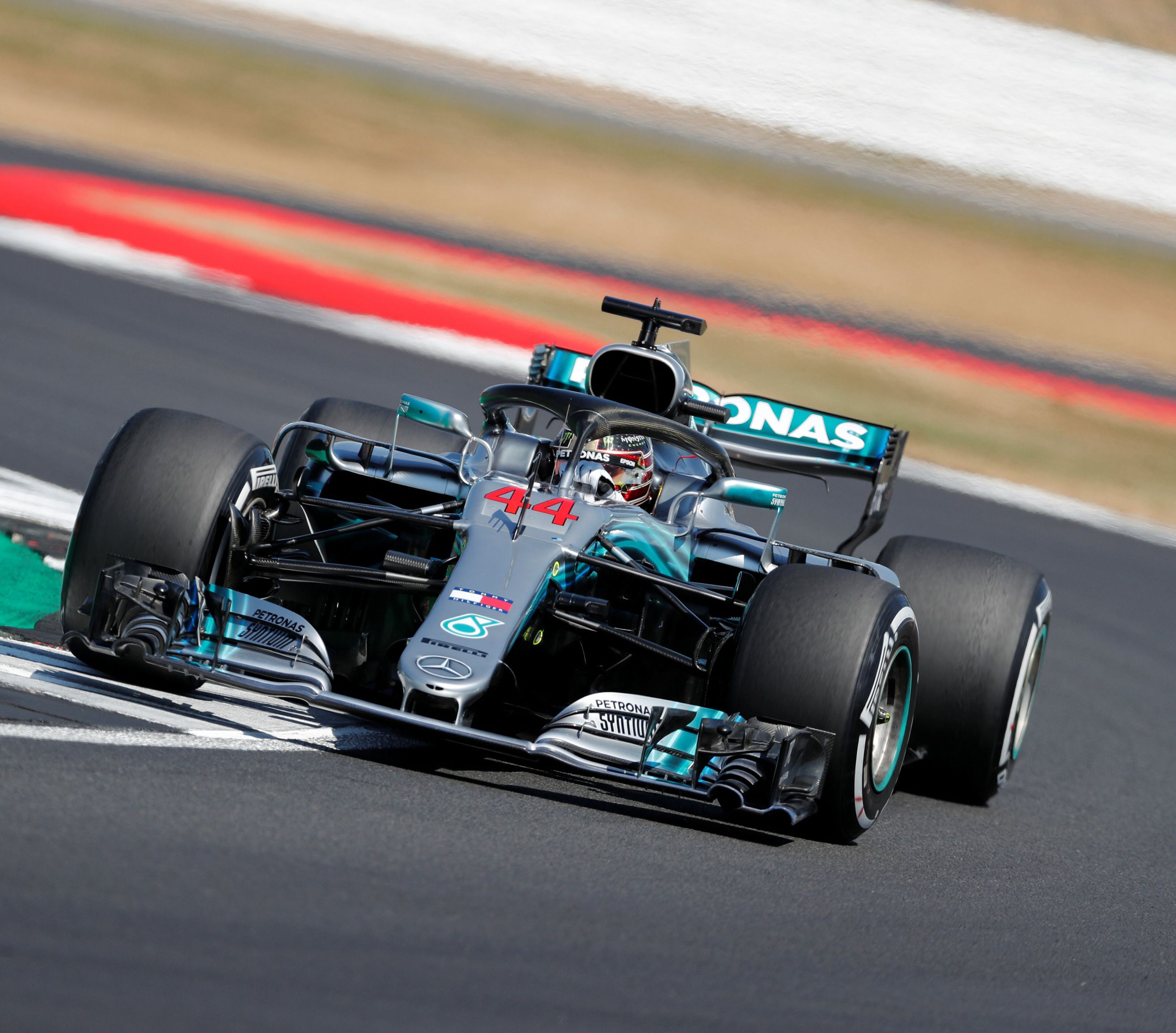 El piloto británico Lewis Hamilton (Mercedes-foto) logró ayer la pole positon en el GP de Gran Bretaña de Fórmula 1, que se disputa en el circuito de Silverstone. Hamilton, que logró la cuarta pole de la temporada y la 76 de su carrera, acreditó un mejor tiempo de 1:25.892 con el que superó en 44 milésimas al alemán Sebastian Vettel (Ferrari), con quien hoy compartirá la primera línea de la parrilla de salida en el trazado británico.