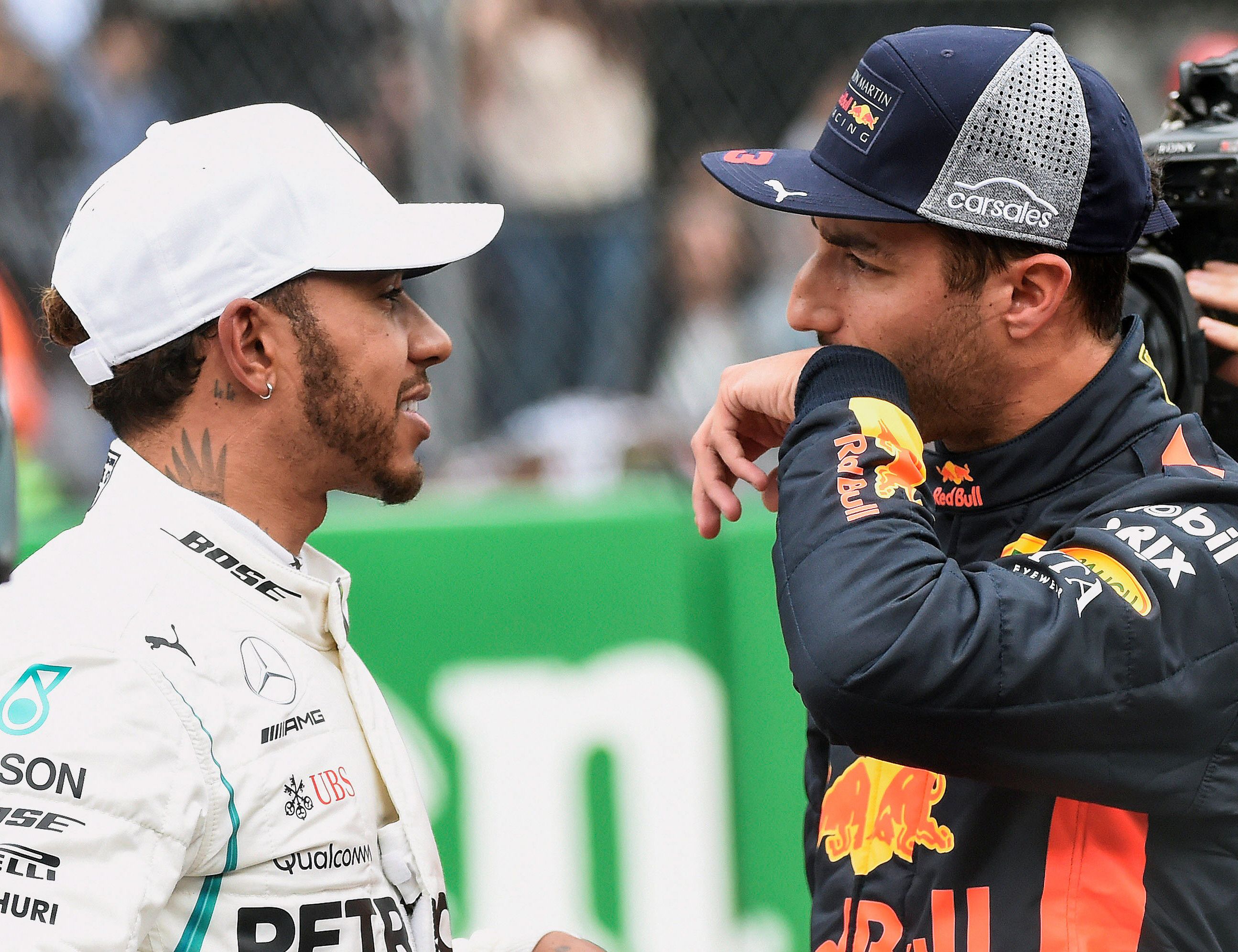 El 1-3. Hamilton (izquierda) habló con el poleman en México, Daniel Ricciardo. El inglés necesita llegar entre los primeros siete para ser campeón.