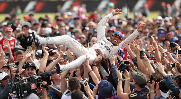 El campeón de la Fórmula 1, el inglés Lewis Hamilton, logró ayer un sólido triunfo en el Gran Premio de Gran Bretaña y redujo a un punto su diferencia respecto del líder de la temporada, el alemán Nico Rosberg, que llegó como primer escolta pero fue bajado al tercer puesto por una penalización de 10 segundos ante el uso indebido del sistema de comunicación por radio.