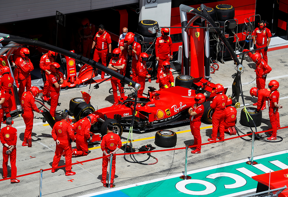 Leclerc, quien luego en boxes reconoció su error, intentó el sobrepaso hacia Vettel en el frenaje de la segunda curva, allí el monegasco se montó a la Ferrari del alemán y le arrancó el alerón trasero. Al instante, ambos fueron a boxes, donde el cuatro veces campeón del mundo debió abandonar (foto) y su compañero siguió en carrera pero momentos después tuvo que desertar.