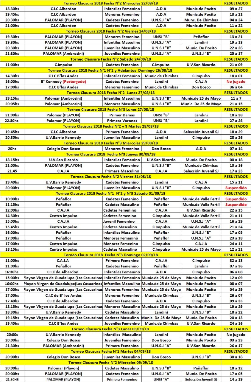 Handball sanjuanino: resultados de la fecha pasada y fixture de lo que viene