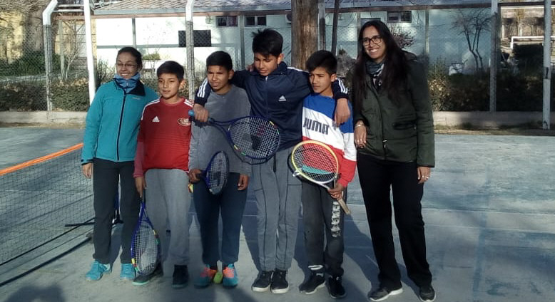 Los chicos de las categorías Sub-12 y Sub-14 de tenis, que clasificaron al Provincial, junto a su profesora.