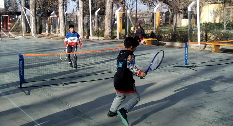 Uno de los partidos de tenis que se desarrollaron en el Centro de Educación Física N´20, en el departamento Santa Lucía.