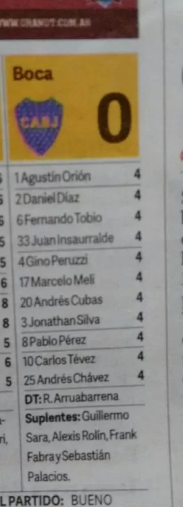 Tras la contundente derrota de Boca por 4 a 0 ante San Lorenzo en la final de la Supercopa Argentina, Clarín deportivo puntuó a los jugadores del club de la ribera con un mismo número: ‘4’ .