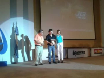 El piloto, que se consagró campeón con un Ford Mondeo en el Top Race Series, obtuvo 1.853 sufragios y tuvo su reconocimiento. Américo Vargas, periodista de Radio Sarmiento, le dio el galardón.
