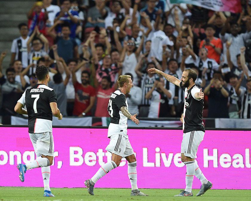 En Juventus, el "Pipita" Higuaín, quien todavía no tiene definido su futuro en el club, entró para jugar el segundo tiempo y diez minutos después marcó el 1-1 parcial para el equipo dirigido por Maurizio Sarri, quien ya lo dirigió en Napoli y en su último paso por Chelsea. Este partido se disputó en Singapur en el marco de la International Champions Cup 2019.