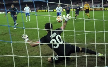 El delantero argentino, Gonzalo Higuaín, anotó ayer los tres goles con los que Nápoli superó a Dimano de Moscú de Rusia por 3-1, en Italia, en el partido de ida de los Octavos de final de la Liga
