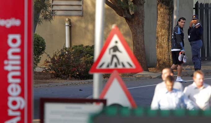 Por la concentración argentina ya pasaron además de argentinos, ingleses y mexicanos, algunos brasileños, entre ellos, un padre con su hijo que llevaba la “canarinha” con el número 10, quienes se pusieron a jugar a la pelota en la puerta del Centro de Alto Rendimiento de Pretoria.
