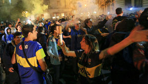 "Dirigentes traidores, defiendan a Boca", gritaron los hinchas, haciendo alusión a las diferentes sanciones que recibió el club después del bochornoso Superclásico por la Copa Libertadores.