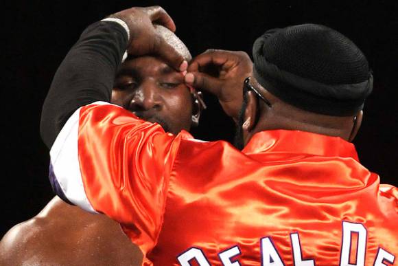 Holyfield había sufrido un corte importante en el párpado izquierdo en el segundo capítulo tras un encontronazo involuntario entre ambos y el norteamericano siguió combatiendo. Pero en el descanso entre el tercer y cuarto asalto el médico de turno subió al rincón de Holyfield, lo revisó y constató que la herida le impedía la visión, por lo cual le indicó al árbitro que el ex campeón mundial no podía seguir combatiendo.