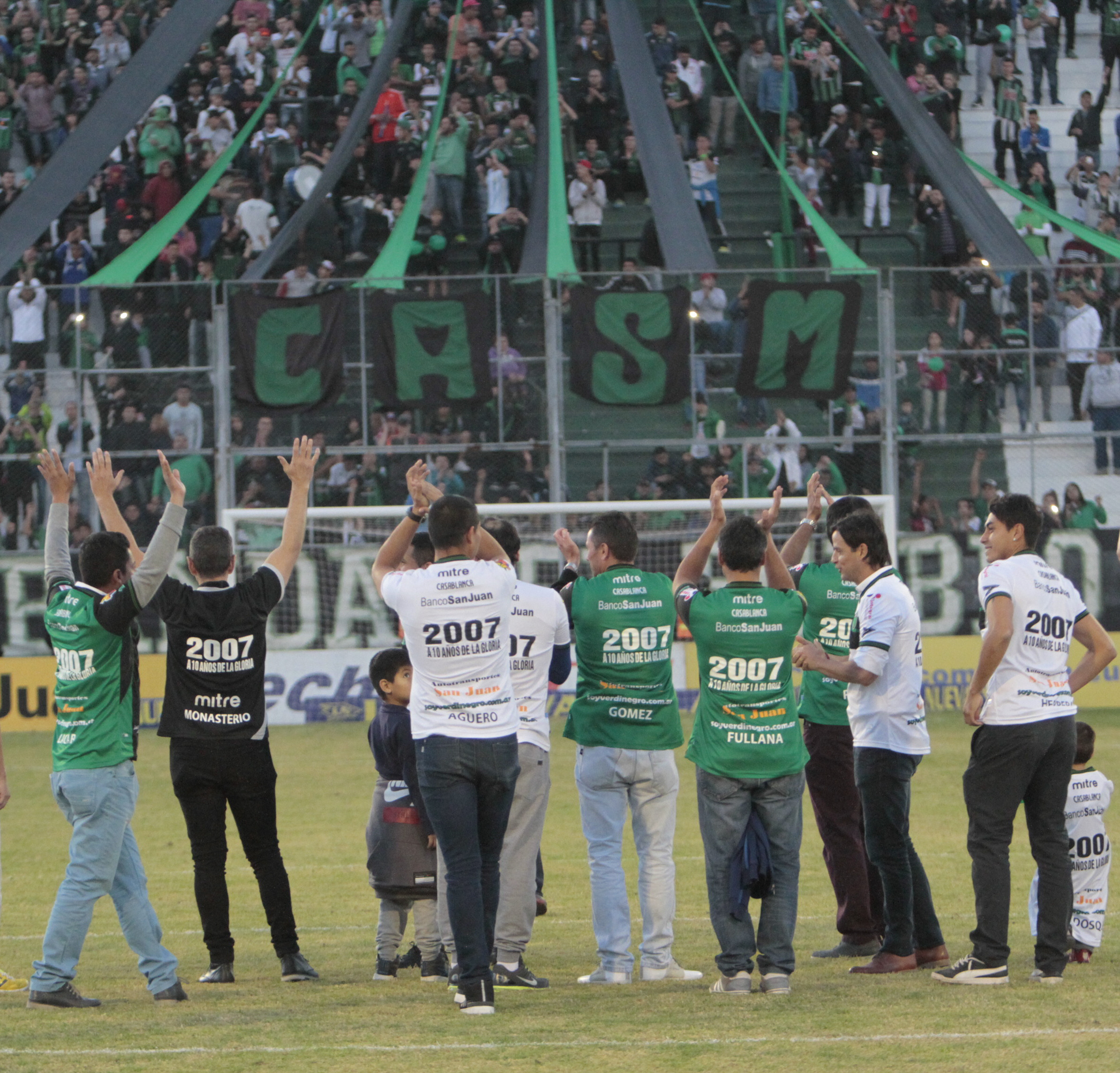 César Monasterio llegó desde Buenos Aires, Sergio Plaza de Salta, Matías García de Mendoza al igual que el albardonero Ariel Agüero ya que juega en Independiente Rivadavía, más los sanjuaninos Marcelo Laciar, Nicolás Herrera, Alexander Alvarez, Alejandro Gómez, Mario Pacheco, Ernesto Fullana y Daniel Díaz recibieron la ovación de las tribunas cuando ingresaron a la cancha en el entretiempo con la camiseta verdinegra puesta y la leyenda en la espalda que decía “2007, a 10 años de la gloria”.